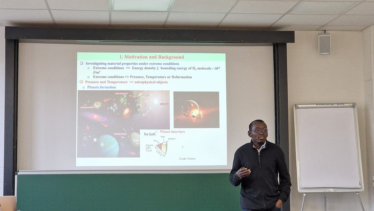 Herr Amadou Nourou hat einen Doktortitel in High Energy Density Physik von der École Polytechnique in Paris, Frankreich, und ist derzeit außerordentlicher Professor an der Abdou Moumouni Universität in Niamey im Niger. Seit seiner Rückkehr in sein Heimatland konzentriert sich seine Forschung hauptsächlich auf die computergestützte Materialwissenschaft, insbesondere auf die Verwendung von Simulationen im atomaren Maßstab zur Untersuchung der Plastizität und Phasenübergänge in festen Materialien sowie deren Kopplungsprozesse. Insbesondere hat Herr Amadou zur Charakterisierung der dynamischen Verformung von Eisen unter shock and ramp Kompression beigetragen. Über eine detaillierte Charakterisierung der Plastizität und Phasenübergänge in Eisen hinaus hat seine Arbeit verschiedene neuartige Phänomene aufgezeigt, wie zum Beispiel:
